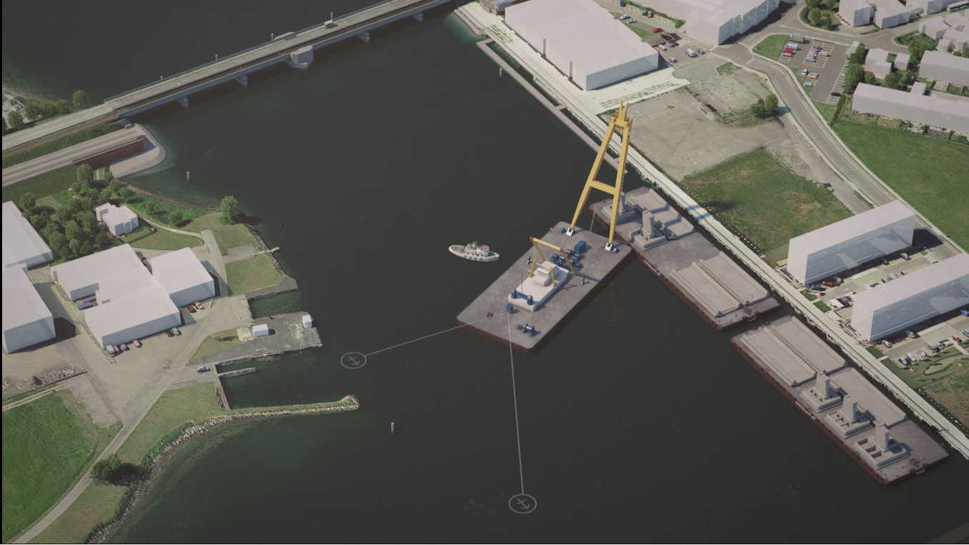 Af sikkerhedsmæssige årsager spærrer vi den østlige del af kajen på Vordingborg-siden af Masnedsund. I den kommende tid ankommer fundamenter og elementer til den nye jernbanebro på store pramme fra Polen. Prammene får oplagsplads langs kajen, hvor også en meget stor kran på flydepram får plads.