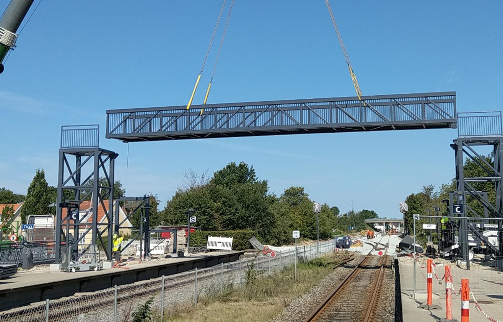 Banedanmark har benyttet lejligheden til at opføre gangbroen hen over sommeren, hvor sporene alligevel har været spærret i forbindelse med sporarbejderne, så man undgår at genere togtrafikken på et senere tidspunkt.