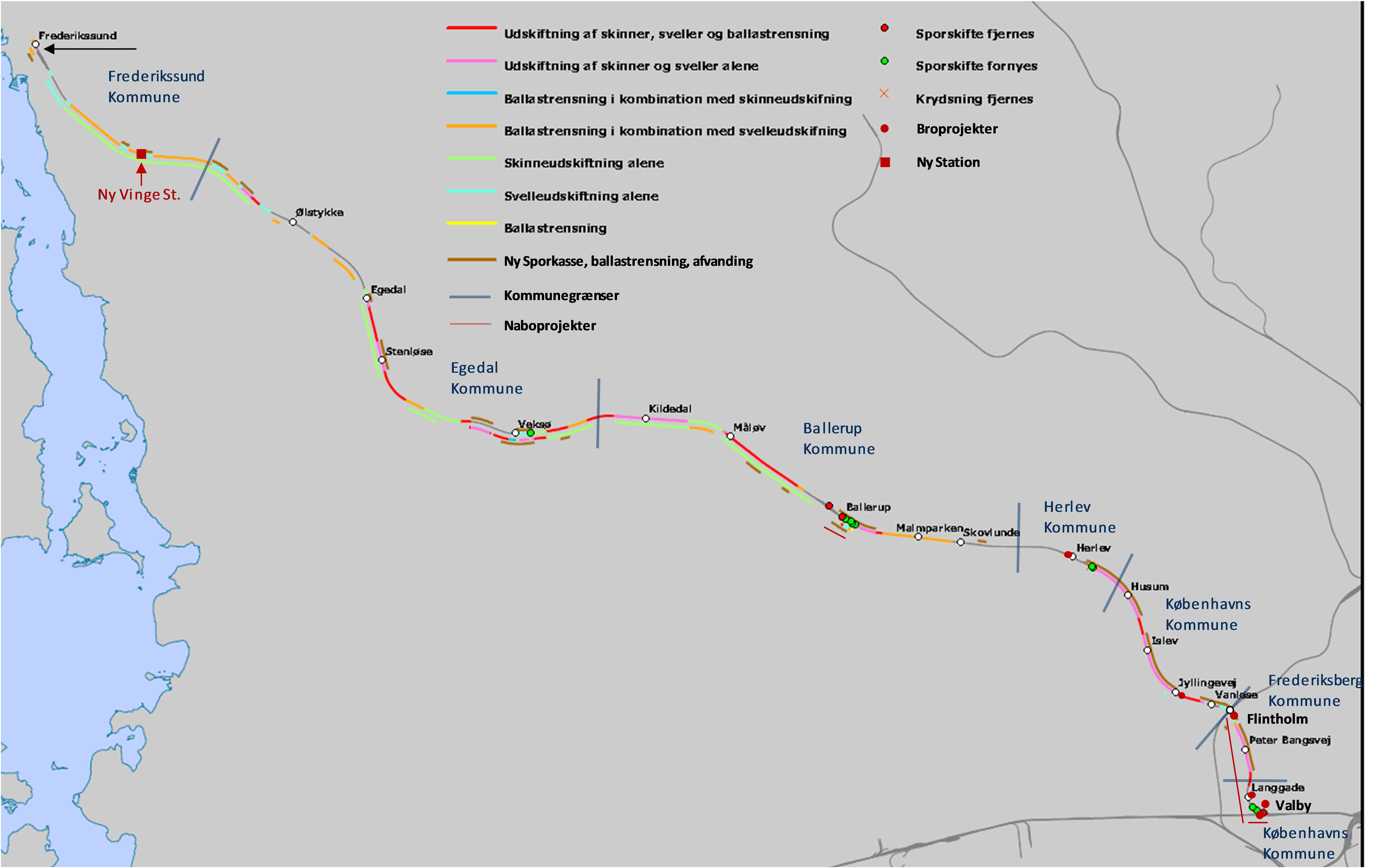 Den 40 km lange strækning mellem Valby og Frederikssund er efterhånden så slidt, at det er nødvendigt at udskifte spor, sveller, flere broer og kørestrøm for at sikre banen til fremtiden