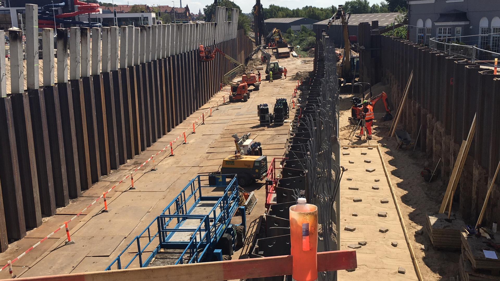 Ramningen af betonpæle og nedvibrering af spunsplader er nu overstået på både Parkboulevarden og Viborgvej.