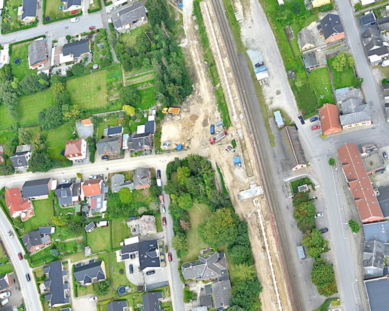 Tirsdag den 24. oktober begynder Barslund A/S at indrette byggeplads på begge sider af banen – en lille plads ved Kirkevej og en lidt større ved Teaterbygningen.