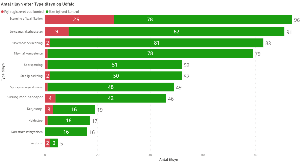 Der er ved alle tilsyn (96) udført kontrol med, om SR-arbejdsledelsen har scannet kvalifikationer ved arbejde i spor, og der er konstateret fejl 26 gange. Sagerne er sendt til behandling hos de relevante virksomheder.