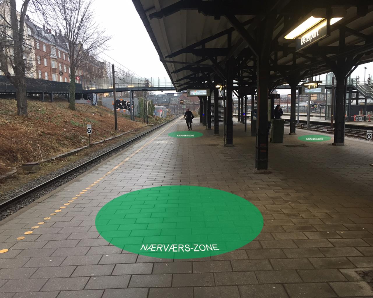 Banedanmark indfører nu særlige zoner på perronerne både på både S-banen og fjernbanen. Zonerne, som er malede grønne cirkler på perronen, kan bruges af ventende passagerer, som gerne vil i snak med andre på perronen.