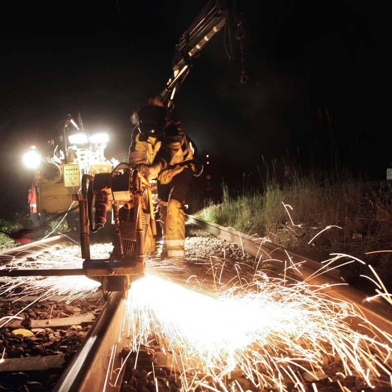En gang i timen viser vi, hvordan vi svejser skinnerne ved en såkaldt termitsvejsning. Det er en spektakulær forestilling i flere akter. Først blandes termitten, som er en særlig metalblanding bestående af aluminiumpulver og metaloxid. Dernæst hældes det ud over skinnerne, hvorefter det antændes og udvikler ekstrem høj varme på omkring 2500 grader. Forbrændingen splitter jern- og iltatomerne, afgiver aluminiumoxid, og resultatet er flydende jern. Det er et helt særligt syn, som mest af alt minder om nytårsaften.